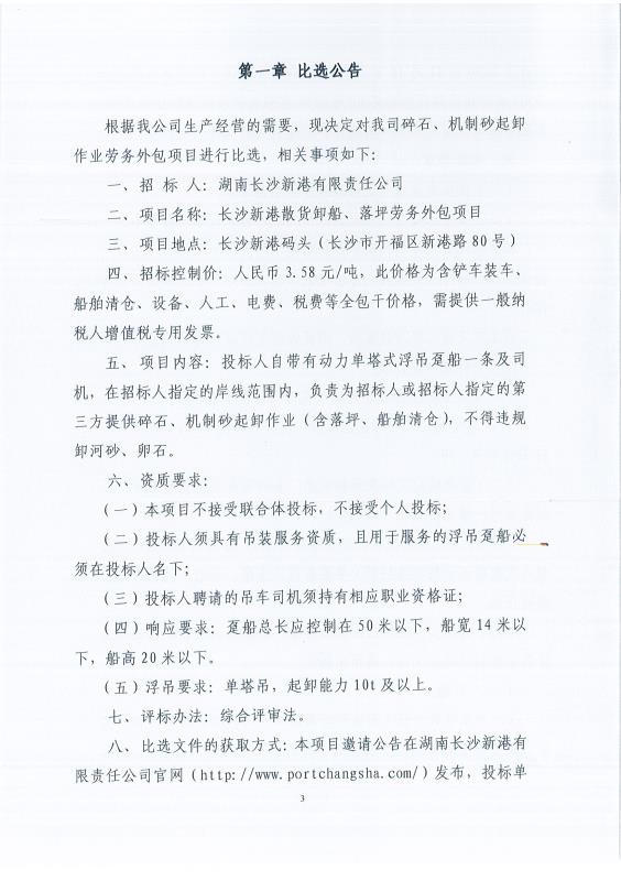 比選公告:長沙新港散貨卸船、落坪勞務(wù)外包項目