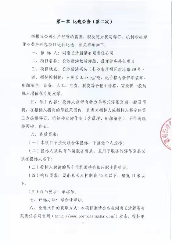 散貨卸船/落坪勞務(wù)外包項(xiàng)目的比選公告