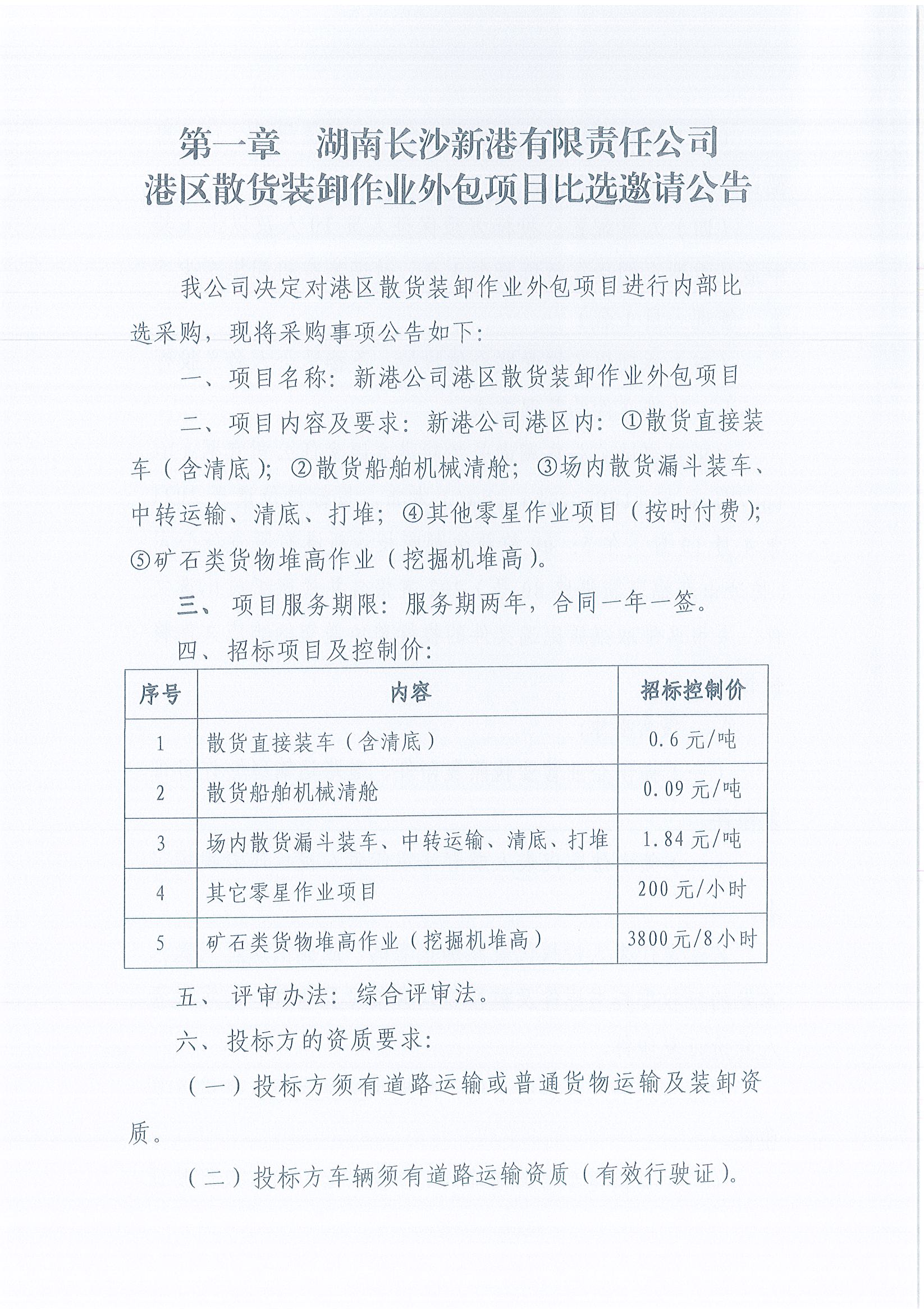 湖南長沙新港有限責任公司港區(qū)散貨裝卸作業(yè)外包項目比選邀請公告