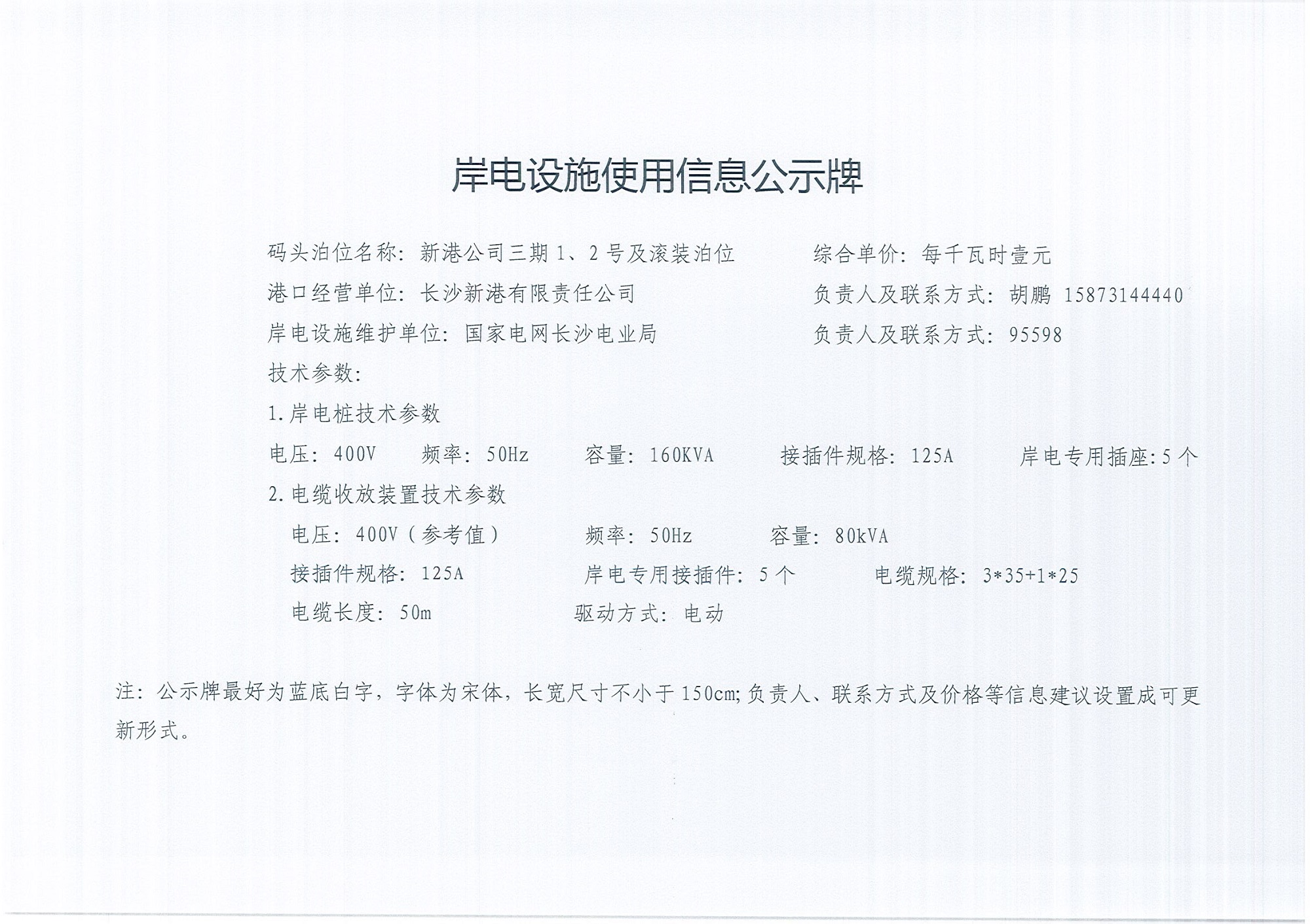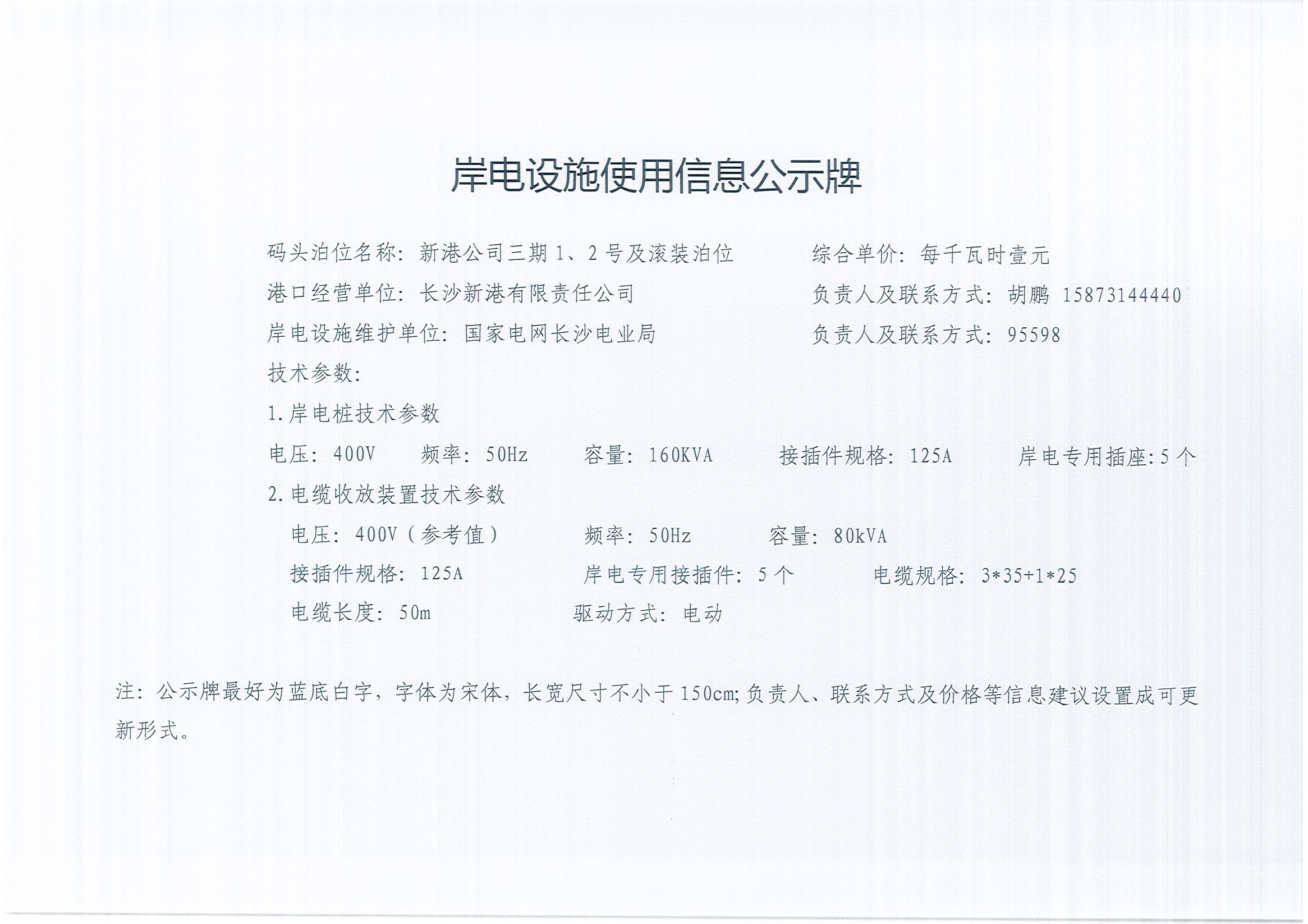 岸電設(shè)施使用信息公示牌