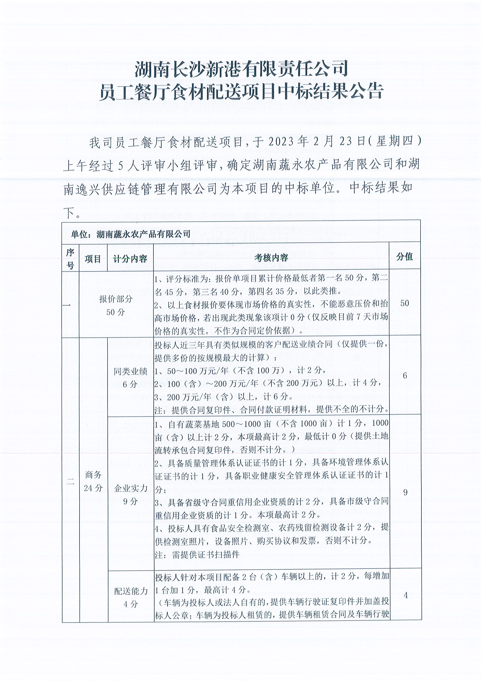 員工餐廳食材配送項目中標結(jié)果公告